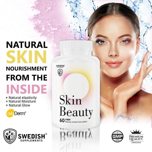 Swedish Supplements Beauty Skin - 60 kapszula. A Skin Beauty olyan anyagokból áll, amelyeket hagyományosan a bőr belülről történő táplálására, megőrzésére használnak