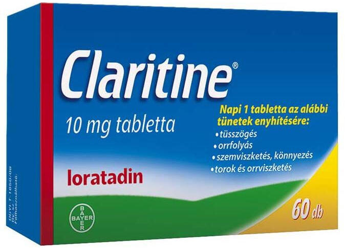 Napi 1 tabletta 24 órás hatással a - mintegy 200-féle allergén által okozott - szénanátha, házipor és állatszőr okozta allergia tüneteire (tüsszögés, orrfolyás, orrviszketés, könnyezés, szemviszketés, torokkaparás), valamint csalánkiütés esetére. A Claritine 10 mg tabletta vény nélkül kapható gyógyszer. Hatóanyag: loratadin. A Claritine 10 mg tabletta az antihisztam