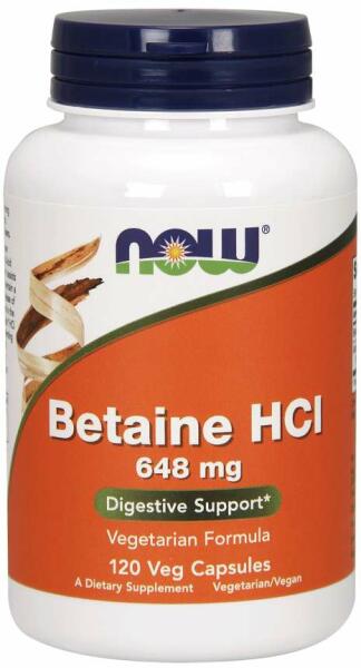 Betain-HCl vegetáriánus változatban növényi aspergillopepszinnel, az állati pepszinnel egyenértékű hatékonysággal.