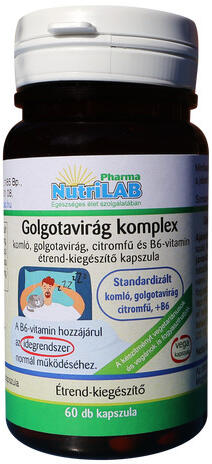 NutriLAB Golgotavirág komplex vega 60x komló kivonat, golgota virág kivonat, citromfű kivonat és B6-vitamin tartalommal étrend-kiegészítő kapszula A B6-vitamin hozzájárul az idegrendszer normál működéséhez, a normál pszichológiai funkció fenntartásához. A készítményt vegetáriánusok és vegánok is fogyaszthatják. Napi adag1 kapszula2 kapszulaKomlótoboz standardizált ki