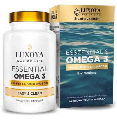 LUXOYA - ESSENTIAL OMEGA 3 - EASY & CLEAN - KÖNNYŰ & TISZTA - 60 db Támogasd szív- és érrendszered egészségét, valamint agyműködésed optimális állapotát a LUXOYA Essential Omega 3 segítségével! Ez a prémium minőségű omega-3 zsírsav-kiegészítő könnyen fogyasztható és tiszta összetételű, így ideális választás az egészséges életmód részeként. Főbb je