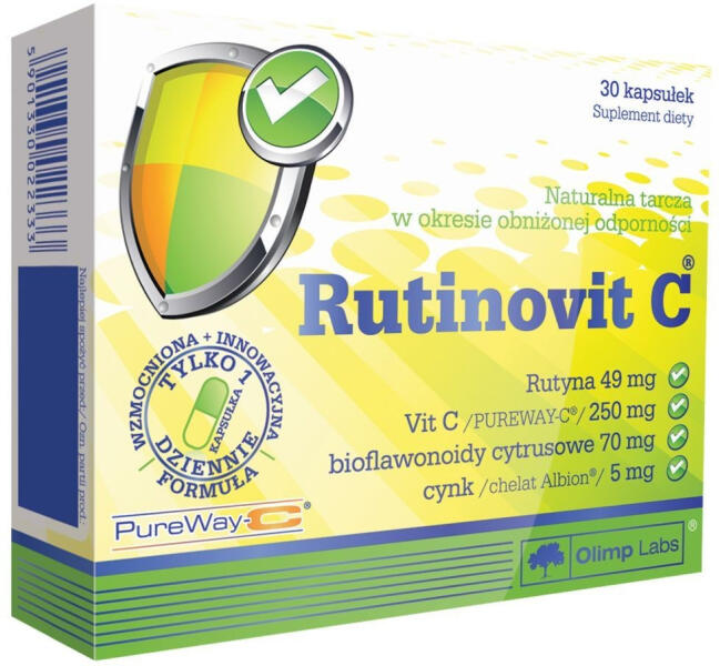 Az Olimp Rutinovit C ® magas antioxidáns tartalmú készítmény, mely szabadalmaztatott szerves C-vitamin, bioflavonoid és zinc tartalmával hatékony immunerősítő, ideális a meghűléses időszakban, valamint nagy segítség a dohányzás, vagy akár a szennyezett városi környezet káros hatásainak csökkentésére. Az Olimp Rutinovit C ® magas antioxidáns tartalmú készítmény, me