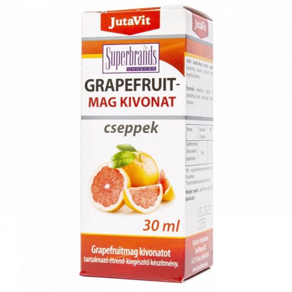 Grapefruitmag-kivonatot tartalmazó készítmény folyékony kiszerelésben. A grapefruitmagban lévő természetes hatóanyagok segítséget nyújthatnak többek között megfázás, felfázás, gombás fertőzések, illetve refluxos panaszok esetén. A JutaVit Grapefruitmag-kivonat cseppek adagonként 40 mg grapefruitmag-kivonatot tartalmaz, amely 400 mg növénynek felel meg.
