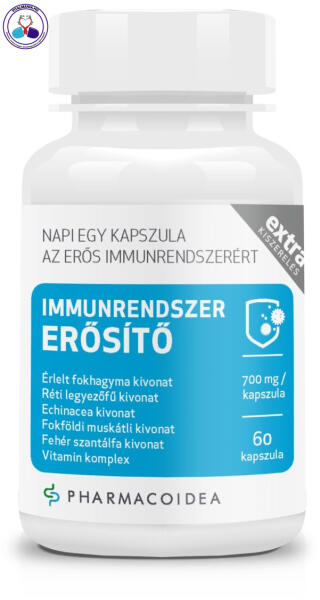 Hatóanyagok 1 kapszulában Érlelt fokhagyma kivonat 200 mg Réti legyezőfű virágos hajtás kivonat 200 mg Bíborlevelű kasvirág (echinacea) virág kivonat 150 mg C-vitamin (L-aszkorbinsav) 80 mg (NRV 100) Fokföldi muskátli (Pelargonium sidoides) gyökér kivonat 45 mg Fehér szantálfa kivonat 20 mg E-vitamin (alfa-tokoferol) 1,8 mg (NRV 15) B6-vitamin (piridoxin) 0,7 mg (NRV 50) A-vitami