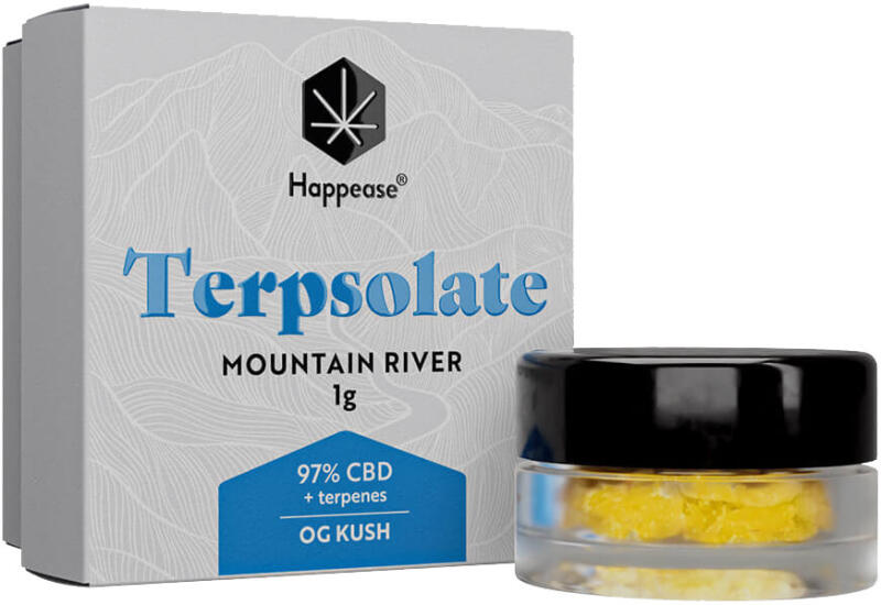 OG Kush 97% CBD kivonat 1 g Happease Mountain River 97% CBD A Terpsolate 97% CBD – OG Kush egy kivételesen tiszta, 97%-os CBD-tartalmú termék, amely hozzáadott OG Kush terpénprofiljával igazi prémium élményt nyújt. A terpsolate formában megjelenő CBD biztosítja a teljes spektrumú OG Kush ízvilágát, a tiszta és erőteljes hatást kedvelők számára. Ez a termék különösen n