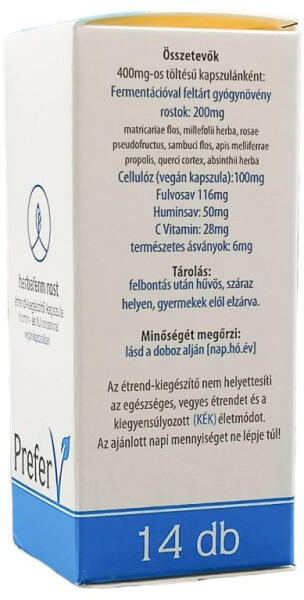 Prebiotikus, természetes fermentációval feltárt rosttartalmú étrend-kiegészítő növényi alapú kapszulában.