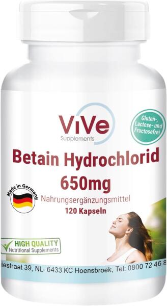 Kiváló ár-érték arány: 120 kapszula bétain-hidrokloridot tartalmaz, melynek nagy része, 76%, bétainhoz, és 24% hidrokloridhoz kötve. A napi 4 kapszula adag 2600 mg betain-hidrokloridot tartalmaz, melyből 1983 mg betain származik. Magas dózis és optimális biológiai hasznosulás jellemzi. Rendszeres bevitel: felnőtteknek napi 4 kapszula étkezések között, bő vízzel. 100% vegá