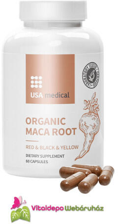 Az ORGANIKUS MACA gyökér kapszula három féle, azaz fekete, piros és sárga maca gyökér kivonatot is tartalmaz, fekete borssal kiegészítetve a jobb felszívódás érdekében . Egy havi adag. Az ORGANIKUS MACA gyökér kapszula három féle, azaz fekete, piros és sárga maca gyökér kivonatot is tartalmaz, fekete borssal kiegészítetve a jobb felszívódás érdekében. Az USA Medical M