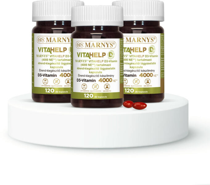 Elősegíti a csontok és az izmok normál fenntartását D3-vitamin készítmény, 4000 NE, kapszulákban 2 x 120 db A MARNYS® Vitamin D 4000 NE 100 μg (4000 NE) D-vitamint tartalmaz kapszulánként . A D-vitamin a MARNYS® D-vitamin 4000 NE-ben az állati eredetű D3 (kolekalciferol) ( lanolin). A D-vitamin az étrendből nyerhető, ebben az esetben az epesók segítségével felszívódik a v