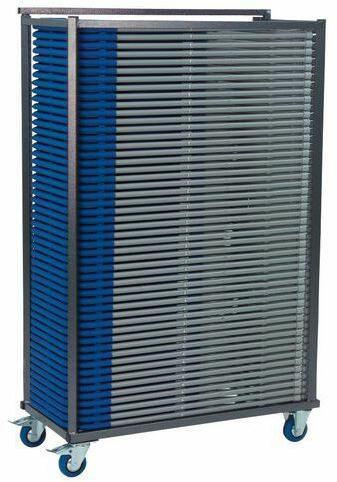 Kocsi polipropilén székekkel Zárórendszer a kocsi tartalmához. Karcálló fényezés. 2 fékezett forgó kerékkel és 2 rögzített kerékkel.