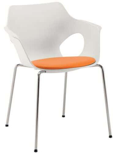 - krómozott acélváz - modern, műanyag kagylóülés kárpitozott ülőfelülettel - választható műanyag színek: fehér, fekete, homokszín, narancssárga, piros, sötétkék, szürke, zöld (kérjük, megrendeléskor jelezze) - lyukacsos műanyag háttámla - rakásolható - krómozott szárú, műanyag támfelületű karfa opció, felára: 14 490 Ft - asztalkás karfa opció, felára: 30