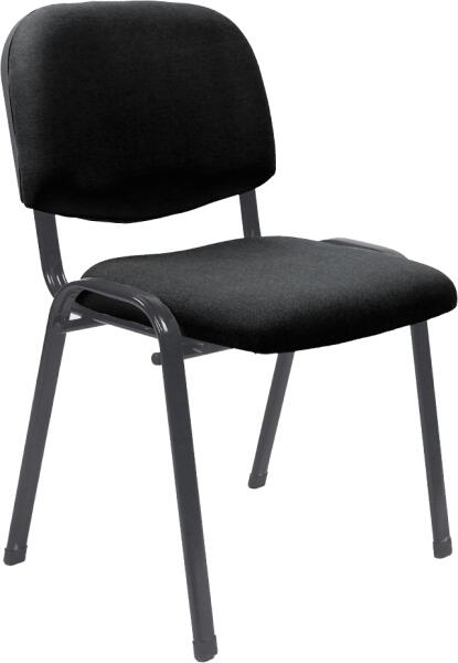 Festett fekete színű fémvázú tárgyalószék nem gyulladó szövet kárpitozású háttámlával és ülőlappal. Nagy teherbírású, rétegeltlemez betétes háttámla és ülőlap. Fekete színű műanyag védőborítás a háttámla hátsó és az ülőlap alsó részén. Műanyag csúszótalpak. Rakásolható kialakítás - maximum 10 db. A székek soroló elemmel egymás mellé kapcsolh