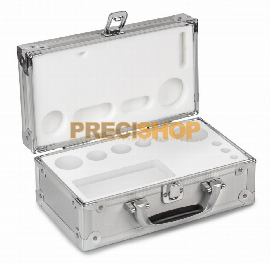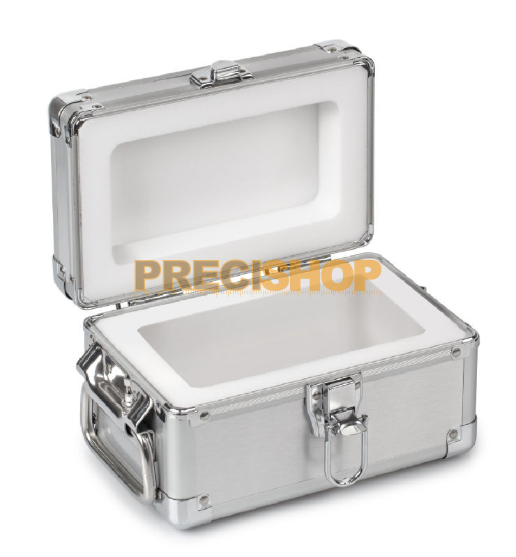 Bélelt alumínium doboz súlysor tárolására, szállítására. Megbízható védelmet ad ipari körülmények között is. OIML E1-M1 pontossági osztályba sorolt súlysorhoz alkalmas.