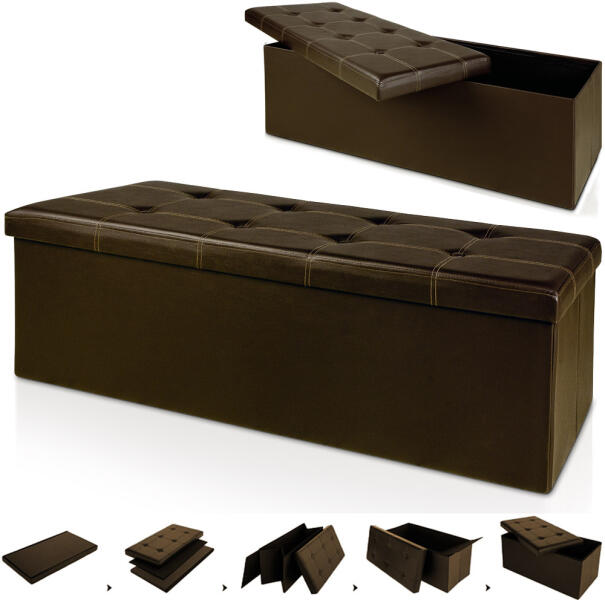 A 114 cm-es MDF pad kivehető tárolóhelyet kínál különféle dolgok számára. A termék előnyei: 114 cm hosszú Használható padnak, tárolódoboznak összecsukható és helytakarékos sok tárhely Mérettartó habszivaccsal borított ülés robusztus MDF anyag (közepes sűrűségű farostlemez) Könnyen kezelhető vízlepergető felület Belső padló nedvesség ellen Bőr huzat (poliure