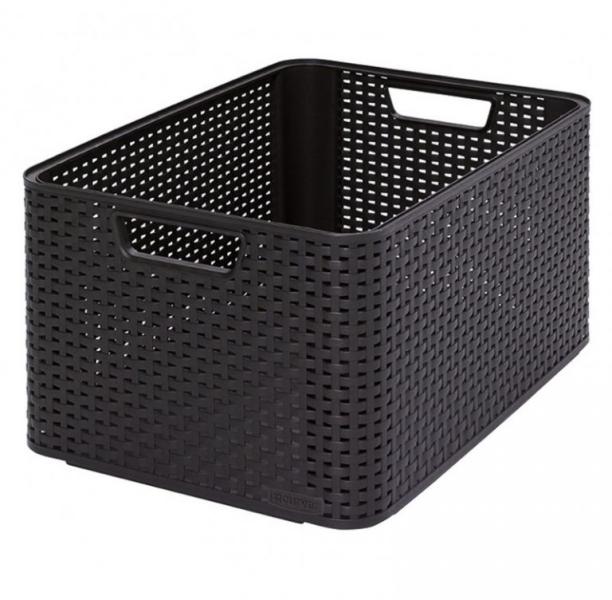 Műanyag tároló rattan kinézetű doboz Curver minőségi márkától. Egyszerű kezelhetőség közönhetően két szilárd fogantyúnak fonott részben, amely biztosítja a légárámlást. Doboz sötétbarna színű és fedél nélkül van. Lehetőség dobozok egymásra rakása (teremt táróló rendszert) Termék részletek: vonzó design alkalmas ruhákra is méret: 43,6 x 22,8 x 32,6 cm an