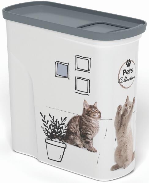 CURVER jutalomfalat tároló doboz 1,5kg/2L cicás 254868 (04346-E26) Magas minőségű műanyagból készült stílusos állateledel tároló, kedvence legnagyobb örömére. A termék tetején lévő fedélnek köszönhetően könnyedén tudja kiönteni a tárolóban lévő eledelt, kedvence számára. Mérgező anyagot NEM tartalmaz, így az állateledel semmilyen káros anyagot nem tud átvenn