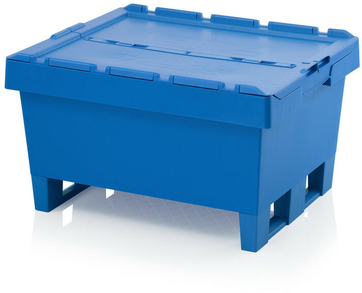 Fedeles, zárható, kék szállító láda, két talppal. Kiváló minőségű műanyag termék, nagy stabilitású oldalfallal, plomb... Fedeles, zárható, kék szállító láda, két talppal. Kiváló minőségű műanyag termék, nagy stabilitású oldalfallal, plombálható fedéllel. Üresen a ládák egymásba rakhatóak, így kisebb helyigénnyel szállíthatóak. Az árak telephelyi átv