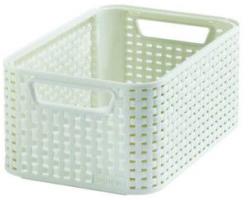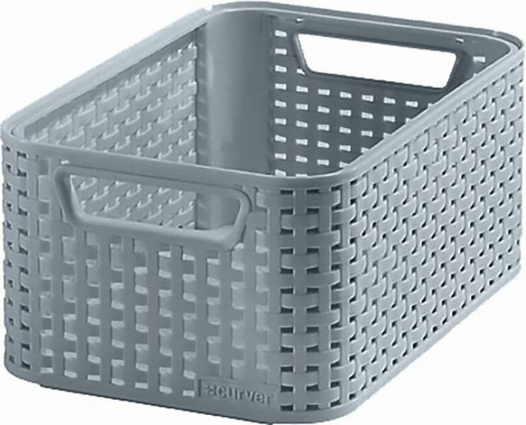 CURVER STYLE S méretű rattan kosár, szürke 253011 (03614-099) A stílusos rattan kosár tökéletes alternatívája valódi, fonott rattan kosaraknak. A modern design illeszkedik a mind a hálószobába, mind pedig fürdőszobába és nappaliba is. Az anyag, amelyből a kosárból készült biztosítja, hogy a benne tárolt elemek nem sérülnek. Műszaki adatok: Méretek (szé x mé x ma): 28