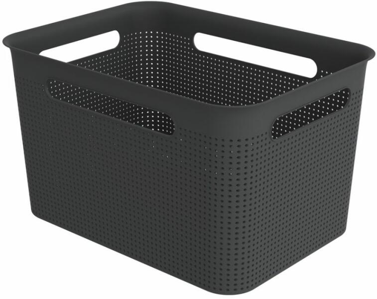 Tárolódoboz perforált szerkezettel. Egyszerű és modern dizájn. Lekerekített sarok. Űrtartalom: 16 L. Minőségi anyag és dizájn a svájci Rotho márkától. Termék részletek: A termék méretei: 36 x 26,2 x 21 cm (H x Sz x Ma) anyaga: műanyag fekete szín űrtartal om: 16 l lekerekített sarok teljes tömeg: 0,40 kg Csomag tartalma: 1 x tároló doboz