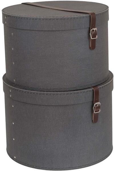 - Egyszerű és elegáns dizájn. - A készlet két kerek dobozt tartalmaz (nagy: 26 x 17,5 cm és kicsi: 23 x 15 cm). - Az alsó rész strapabíró farostlemezből készült, amelyet újrahasznosítási folyamat során nyernek. A fennmaradó elemek fenntartható gyártási eljárással előállított papírból készülnek.