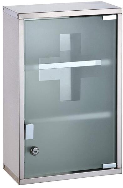 homokfúvott üveg 2 darab kulccsal 3 tárolórekesszel csavarok és tiplik mellékelve A zárható gyógyszeres doboz dekoratív és hasznos eleme lesz fürdőszobádnak. A mellékelt alkatrészekkel a csap fölé, vagy bármely tetszőleges helyre felszerelheted. Fém váza minden fürdőszoba sítlusához passzol. A dobozban 3 tárolórekesz található, homokfúvott üveg ajtaja nem átlátsz