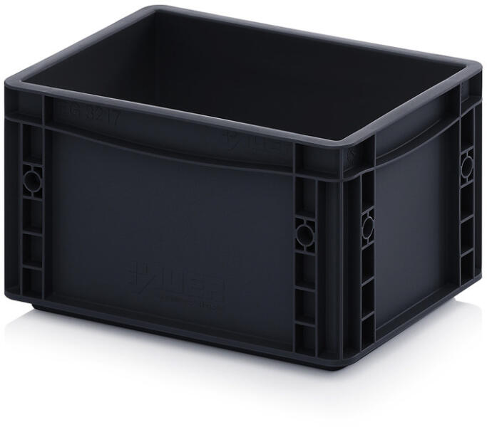 Külső méret H x S x M300x200x170 mmBelső méret H x S x M27 x 17 x 16,5 cmHasznosítható belmagasság a rakatban15,5 cmSúly1,09 kgKöbtartalom7,6 literAnyagaESD PPSzínforgalmi-fekete hasonló RAL 9017Spec. térfogati ellenállás*10⁴