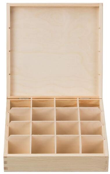 A tea (a kínai 茶 -cscha szóból) a benne található összetevőknek köszönhetően kedvező hatással van a szervezetre. A hideg téli napokon szeretjük melegen kortyolni, nyáron pedig élvezzük a hűs változatát. Ennek a doboznak köszönhetően rendezetten tárolhatja kedvenc teáit, és stílusosan és elegánsan kínálhatja azokat a vendégeinek. A doboz borovifenyőfából kész