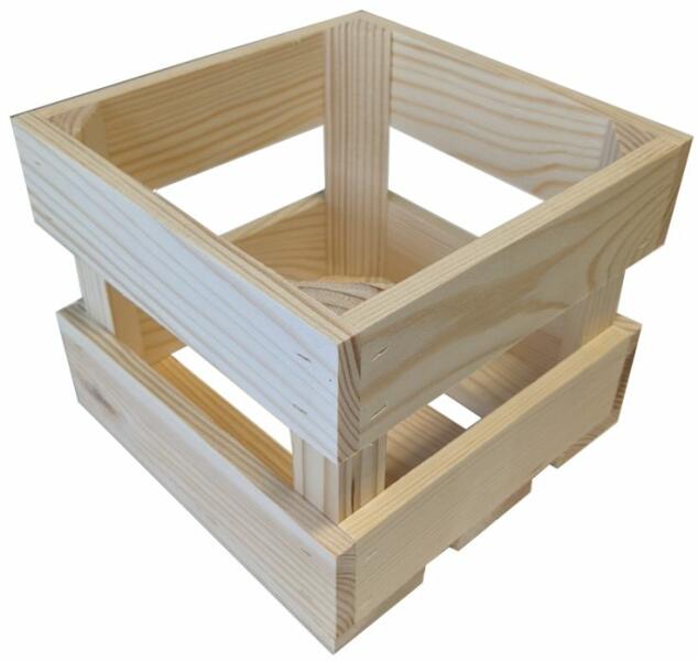 A fadoboz tömör fenyőfából készült. A doboz hasznos játékok, élelmiszerek, ajándéktárgyak tárolására, valamint ajándékkosár alapjaként is kiváló. A termék bevonat nélküli, és bármely fára szánt termékkel festhető vagy természetes festetlen állapotban hagyható. Termék részletek: súlya: 0,5 kg méretek: 20 x 16 x 20 cm (szé x ma x ma) anyaga: fenyő felületkeze