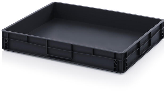 ülső méret H x S x M800x600x120 mmBelső méret H x S x M76 x 56 x 10,5 cmHasznosítható belmagasság a rakatban9,3 cmSúly3,68 kgKöbtartalom45 literAnyagaESD PPSzínforgalmi-fekete hasonló RAL 9017Spec. térfogati ellenállás*10⁴ * Megjegyzés: felhívjuk a figyelmét arra, hogy a feldolgozási folyamattól függő anyagáramlás miatt a kész alkatrésznek eltérő elektromos tulajdons