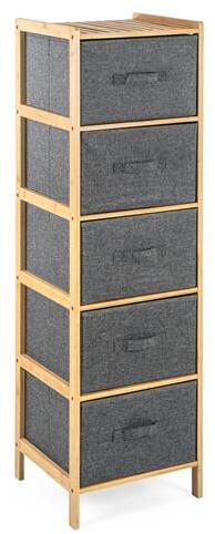 Hová az apró dolgokkal, amelyeknek nincs máshol helyük? Miben tároljunk játékokat, ruhákat, varrási kellékeket vagy egyéb dolgokat? Tekintse meg a stílusos és praktikus állványt 5 kihúzható kosárral, aminek köszönhetően kéznél lesznek a dolgok, de nem lesz látható. És viszonylag kevés pénzért sok tárhely. A G21 bambuszpolc textilkosaras kialakításának, nagy teherb
