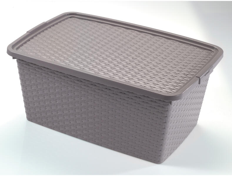 4511 8010059045114 TÁROLÓ DOBOZ Fedeles műanyag doboz Az olasz Heidrun gyártó gyönyörű rattan hatású műanyag doboza nélkülözhetetlen a szobában. A műanyag doboz elegáns kialakítású, így ideális egy lakás vagy ház modern belső terébe. A tároló doboz praktikus kiegészítője lehet a háztartásának. Kényelmesen tárolhatja benne használati tárgyait. Kiváló minősé