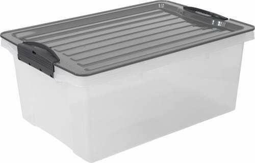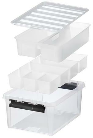 13 literes tárolódoboz. Átlátszó doboz + szürke fedél. A fedél kapcsokkal van ellátva a nem kívánt nyitás ellen. A doboz alkalmas A4-es formátumra. Minőségi anyag és kivitel. Termék részletek: méretei: 39,5 x 27,5 x 18 cm anyaga: műanyag szín: átlátszó / szürke súlya: 0,58 kg Csomag tartalma: 1 x KOMPAKT doboz