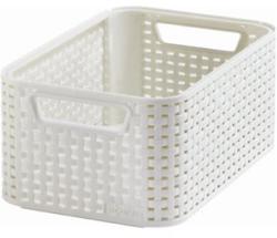 Rattan hatású tárolódoboz iratok, játékok, ruhaneműk, tisztítószerek, fürdőszobai kiegészítők tárolására anyaga: műanyag Méret: 284x193x129 mm Szín: törtfehér