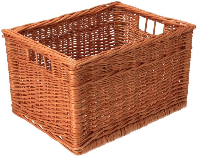 A könnyű, téglalap alakú fonott kosár tökéletesen elrejti mindazt, amit nem szeretne, hogy a szobában heverjen. A kosarat tárolhatja a földön, vagy elhelyezheti egy polcon. A kosár a tömítéseknek köszönhetően könnyen kezelhető, a felső szélén lévő díszítővonal pedig esztétikussá teszi. A kosár fűzfavesszőből készült, és minden darab eredeti.