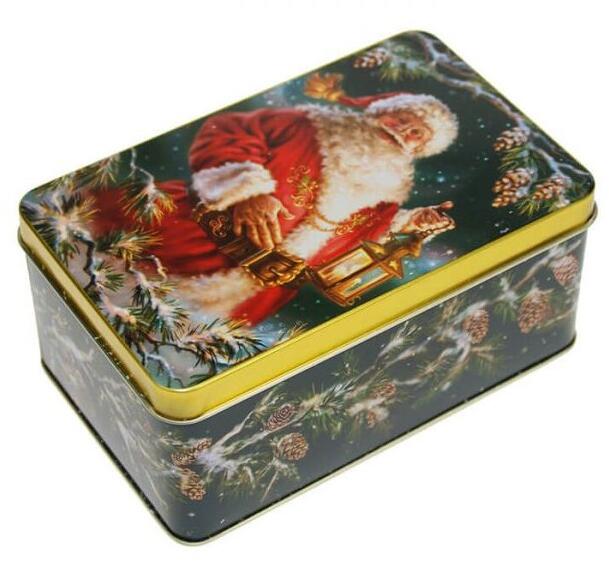 Gyönyörű Télapós mintájú fémdoboz, mely tökéletes kekszek, édességek vagy kisebb tárgyak tárolására, illetve használható ajándékcsomagoláshoz is, mely örömet és meghittséget hoz az ajándékozottnak. Mérete: 14x6,4x8,8 cm. Anyaga: fém.
