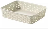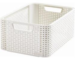 Rattan hatású tárolódoboz iratok, játékok, ruhaneműk, tisztítószerek, fürdőszobai kiegészítők tárolására anyaga: műanyag Méret: 385x290x172 mm Szín: törtfehér