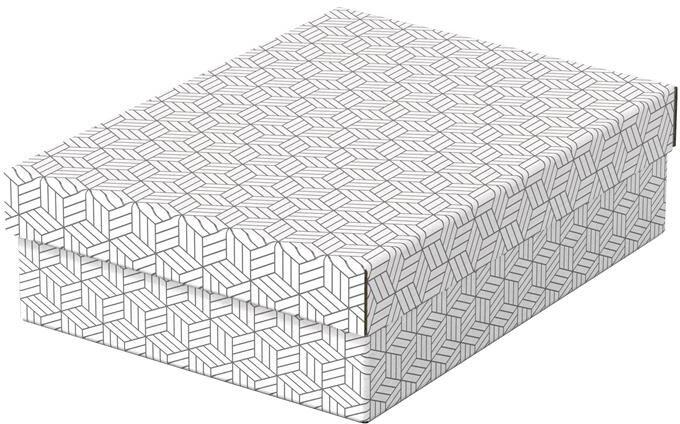 Stílusos és modern karton tárolódobozok levehető tetővel ajándékok csomagolásához vagy otthoni tároláshoz. Három azonos méretű doboz, amelyeket önállóan vagy polcokra helyezve használhat kisebb tárgyak, például fényképek és személyes dokumentumok rendezett tárolásához. Kösse át egy szalaggal és használja ajándék csomagolásához! -100% -ban újrahasznosított és