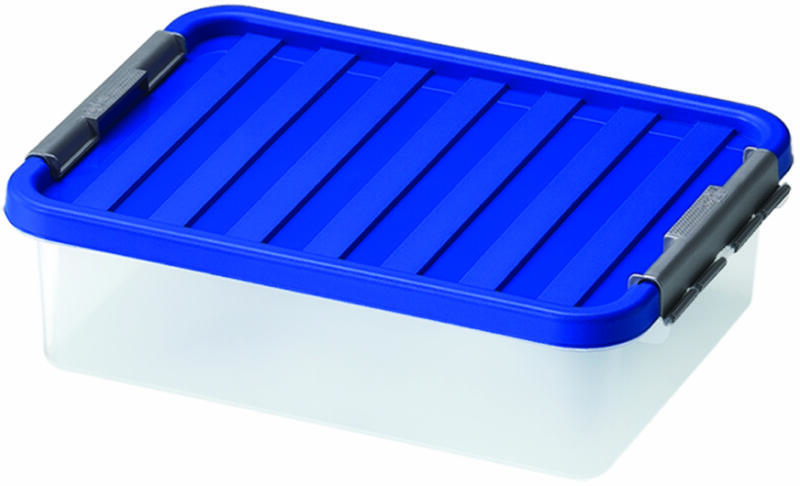 1603 8010059016039 TÁROLÓ DOBOZ Fedeles műanyag doboz Heidrun csíptetős doboz tetőzárakkal – átlátszó / színes fedéllel. Itt egy nagyszerű tárolódobozt ajánlunk: Akár játékokat, ruhákat, cipőket vagy könyveket tárolsz, minden védve van a portól és a szennyeződésektől. Ezen kívül mindig van rálátásod, hogy mi van a dobozban, mert átlátszó. A doboz téglalap al