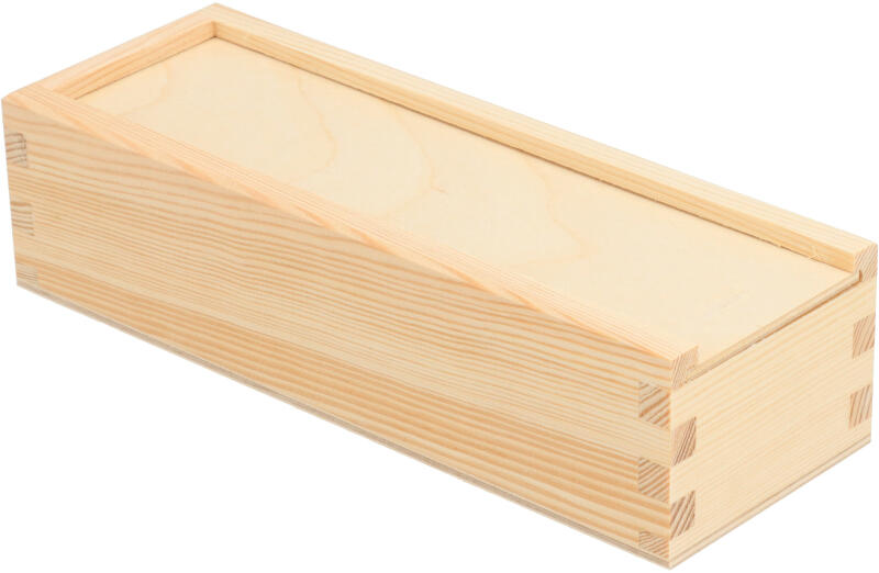 Friss borovi borovifenyőből készült fadoboz, amely az ajándékoktól kezdve az értéktárgyakig és apróságokig mindent elrejt. Leggyakrabban otthoni dekorációként vagy eredeti csomagolásaként használják ajándéktasak helyett. Borovi borovifenyőből és rétegelt lemezből készült. Belső méretei 21 x 6 x 4,5 cm.