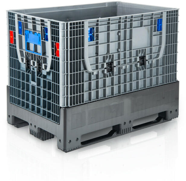 Összecsukható raklapos láda, amely összecsukva jelentős helymegtakarítást biztosít. Az oldalfalakat a nagy térfogatra optimalizálták. Könnyű súly, könnyen tisztítha... Összecsukható raklapos láda, amely összecsukva jelentős helymegtakarítást biztosít. Az oldalfalakat a nagy térfogatra optimalizálták. Könnyű súly, könnyen tisztítható. Higiéniailag biztonságos. Sz
