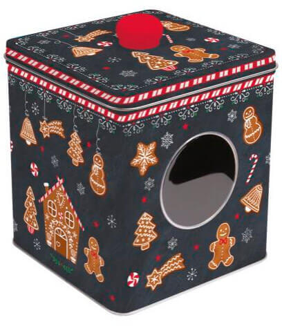 Stílusos mézeskalács mintájú különleges fémdoboz elején kis ablakkal, így bele látni, hogy milyen finom sütemény rejtőzik benne. Teteje könnyedén leemelhető. Karácsonyi fémdoboz mérete: 14,5x13x13 cm. Színvilág: fekete, arany mézeskalács szín. Fedezd fel az olasz Nuova R2S márka Gingerbread kollekció további darabjait is >>