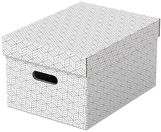 Stílusos és modern karton tárolódobozok levehető tetővel azonnali otthoni tároláshoz. Három azonos méretű doboz, amelyeket önállóan vagy polcokra helyezve használhat személyes dokumentumok, könyvek, játékok rendezett tárolásához. -100% -ban újrahasznosított és 100% -ban újrahasznosítható -a kivágott fogantyúknak köszönhetően könnyen áthelyezhető -FSC minősítet