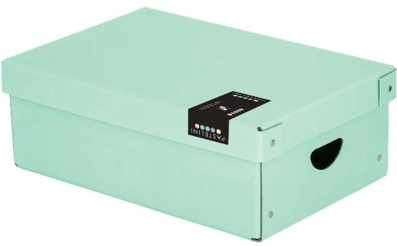 Laminált doboz fedéllel és kivágással a fogantyúkhoz a könnyebb kezelés érdekében. Alkalmas különféle tárgyak tárolására a dokumentumoktól a játékokig. Méretek: 35,5 x 24 x 9 cm
