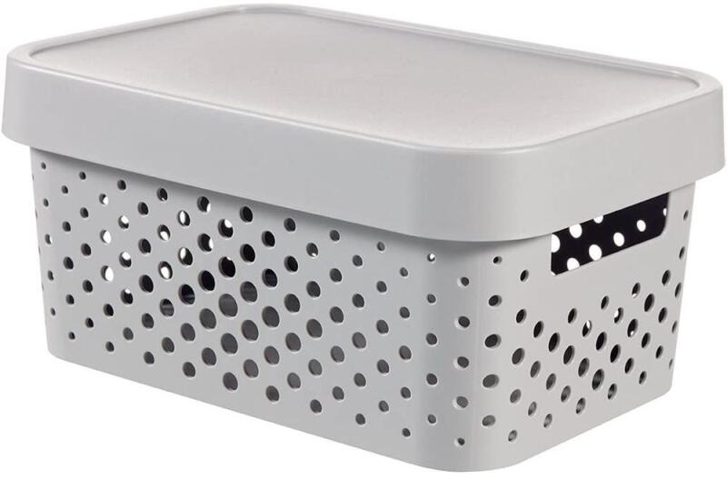 Curver Infinity tárolókosár tetővel 4,5 liter Az Infinity sorozat tárolódobozai a rendet és a stílust garantálják Élelmiszereket, ruhákat, fehérneműt, könyveket és dokumentumokat tárolhat segítségükkel Méretei: 26 x 18.5 x 12 cm Űrtartalom: 4,5 liter