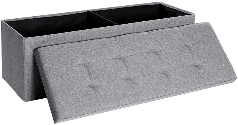 Ez az egyedülálló, 110 cm hosszú ülőke nemcsak puha és kényelmes puff, hanem stabil és tartós tárolóegység is. A kiváló minőségű MDF-panelekkel és fém tartólemezzel ellátott bútordarab 300 kg-ig terhelhető (maximális statikus terhelhetőség), így garantálja a stabilitást és a biztonságos használatot. A 2,5 cm vastag habszivacs párnázat kiküszöböli az MDF-lapok