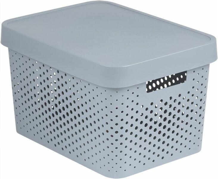 A Curver Infinity Dots doboz tökéletes választás minden otthonba. A 1,4 literes térfogatú doboz tökéletes a holmik tárolására és rendszerezésére. Tegyél bele törölközőket, takarókat, párnákat, ruhákat, játékokat, piperecikkeket és sok más tárgyat. Ha több ilyen dobozt is beszerez, egymásra rakhatja őket. Így helyet takaríthat meg a szobában. Fő előnyök Lyukacso