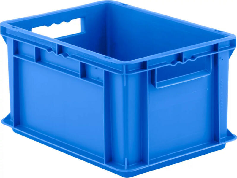 Euro tárolóláda - Méret:400/300/220 mm 20,2 l Alja és falak zártak Sima belső falak a könnyű tisztításért elülső oldalakon fogantyú a biztonságos mozgatáshoz Erős szélek a biztonságos rakásoláshoz 600 kg-ig Bordázott falak a nagy stabilitásért polipropilén ellenálló a legtöbb olajjal, savval és lúggal szemben Szállítószalagon zajelnyelő hőálló -20°C +100°C k