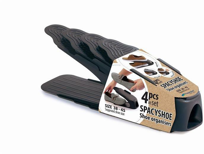Szerezzen több helyet cipőszekrényében a Prosperplast praktikus Spacyshoe cipőrendezővel. Egy csomag 4 műanyag rendezőt tartalmaz, amelyek 38-45-ös cipőmérethez vannak méretezve. A termék antracit színű és 23,5 x 12,5 x 8,5 cm-es. Fő előnyök Praktikus háztartási kiegészítő Helytakarékos Kellemes antracit szín Műszaki adatok Márka: Prosperplast Modell: Spacyshoea Rendelt