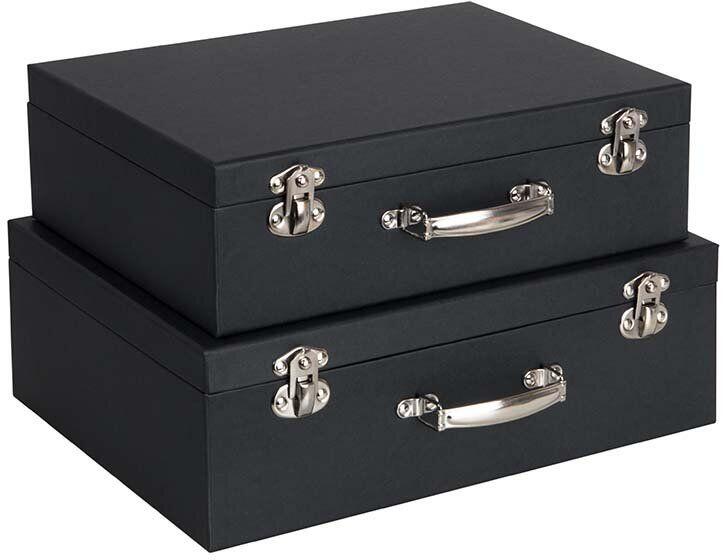 - Egyszerű és elegáns dizájn. - A tartós fedeles szerkezet és fogantyúk biztosítják a kényelmes használatot. - Az alsó rész strapabíró farostlemezből készült, amelyet újrahasznosítási folyamat során nyernek. A fennmaradó elemek fenntartható gyártási eljárással előállított papírból készülnek. - Méretek: 35 x 25 x 12 / 38 x 27 x 13 cm.