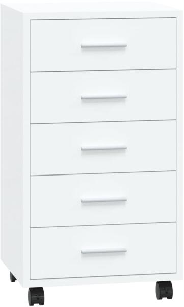 Ez a modern, elegáns, görgőkkel ellátott fiókos szekrény tökéletes és praktikus tárolóhely lesz bármilyen irodában vagy dolgozószobában. Tartós anyag: A szerelt fa kivételes minőségű, sima felületű, szilárd, stabil, és ellenáll a nedvességnek. Bőséges tárolóhely: A szekrény 5 fiókkal rendelkezik, amelyek bőséges tárhelyet biztosítanak dokumentumok, jegyzetfüzet